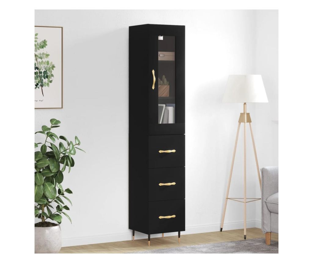 Visoka crna vitrina, 34,5x34x180 cm, obrađeno drvo - Vivre
