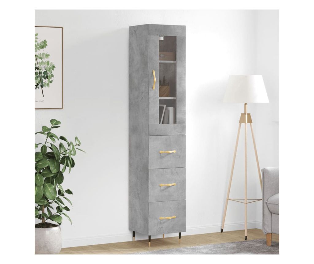 Visoka ormar, siva beton, 34,5x34x180 cm, obrađeno drvo - Vivre