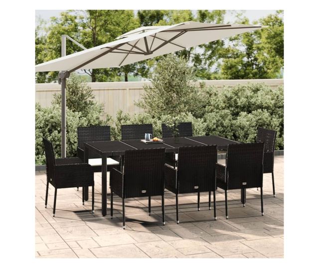 Vrtni namještaj s jastucima, 9 dijelova, crni, poliratan