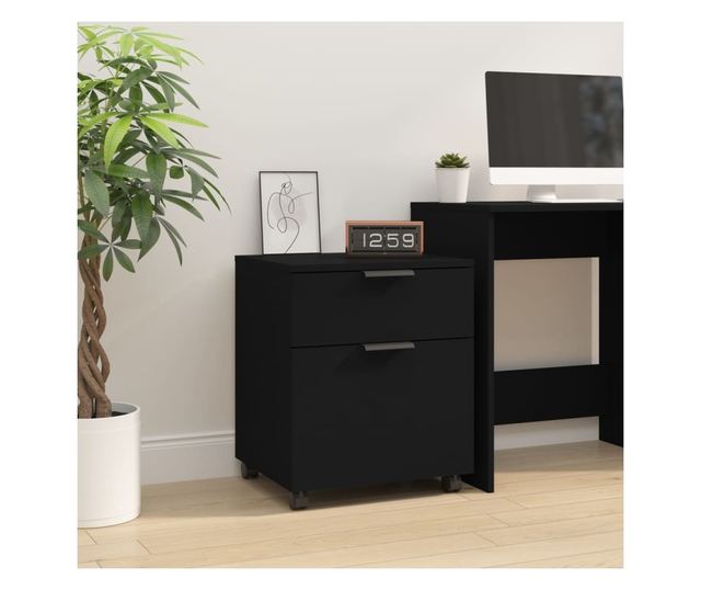 Ormarić za spise s kotačima, crni, 45x38x54 cm, obrađeno drvo