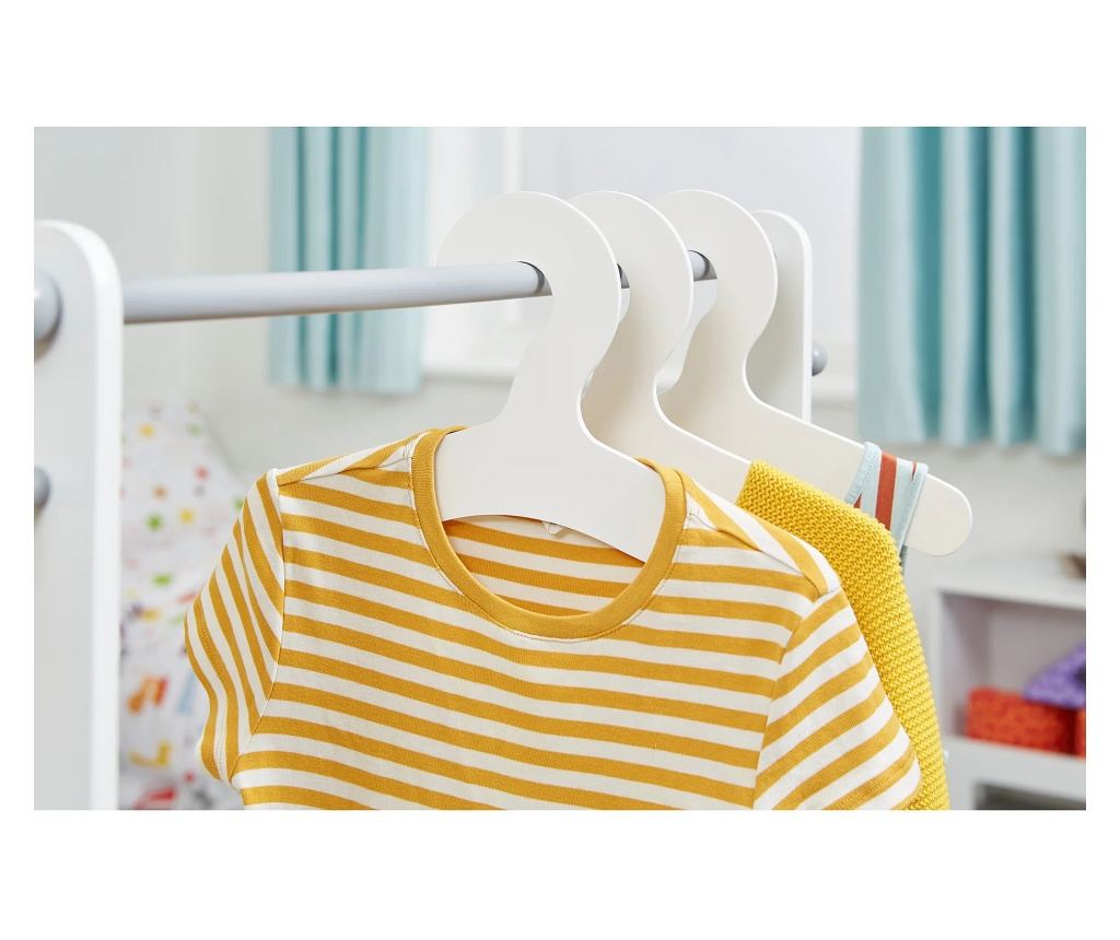 Praktični odijevanje za dječju sobu sa prikladnim policama za skladištenje. Napravite red sa otvorenim stajalištem i potražite odjeću za djetetom je prošlo. Sacka, majice, haljine, bluze i pulovere nalaze se brzo i lako. Izrađen je sa 4 stabilne dodatne kuke za jakne, šalove i šešire. Postoje dva skladišta - ruksak, papuče, šeširi, cipele, igračke. Uz jednostavan i čist dizajn u bijelom i sivom, drveni držanje odjeće odgovara u svakom dječjem vrtiću, bilo da je riječ o dječaku ili djevojci. Veličina je toliko dosljedna da djeca mogu objesiti svoju odjeću na vlastitu. Svi kutovi i rubovi su zaokruženi za maksimalnu sigurnost. Skup je testiran na sigurnosti, snage i stabilnosti te zadovoljava sve europske standarde. Skladište je sa skladišnom jedinicom vrlo lako i brzo. Za djecu od 3 do 10 godina Dimenzije: 70x30x100 cm. Max. -Što je? opterećenje: 10 kg za vješanje, 20 kg za policu Materijal: MDF+ borova drva. Težina: 7,8 kg. "Onda ga možete naći."""