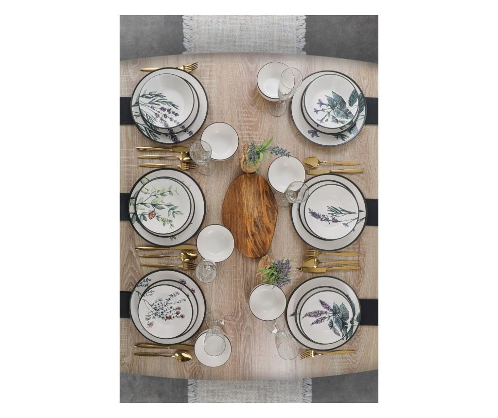 100% keramički stoneware Ne apsorbira vodu Antibakterijski Jednostavan materijal za čišćenje Otporno na termičke šokove Tvrda površina Veliki tanjur (6 komada) Tanjur (6 komada) Zdjela (6 komada) Desertni tanjur (6 komada), Pogodno za uporabu u mikrovalnoj pečnici Sigurno za korištenje u zamrzivaču. Pogodno za pranje u perilici posuđa do 60 ° C.
