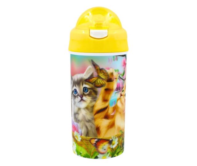 Dječja boca za vodu s motivom mačke - 500 ml. Ova boca za vodu je funkcionalna i zabavna, s preslatkim uzorkom mačke koji će se djeci svidjeti. Dovoljno je velika da vaše dijete bude hidrirano cijeli dan, a dovoljno mala da stane u ruksak ili torbu za užinu.