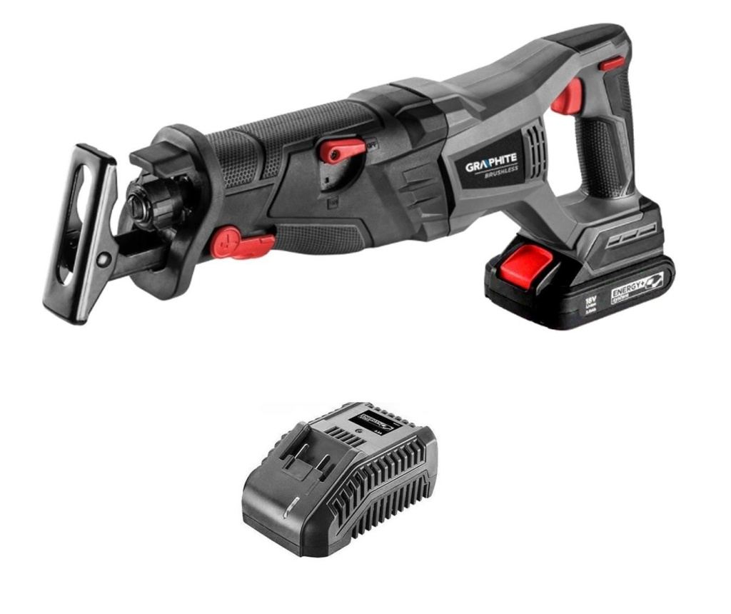 Akumulatorska sabljasta pila s baterijom 2 Ah, 18V Li-ion punjačem, motorom bez četkica, Graphite Energy