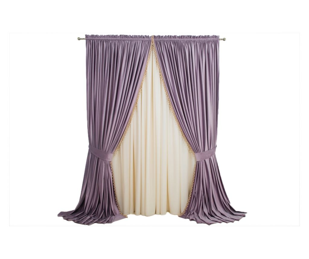 Draperie din catifea, semiopaca, culoare lila prafuit, calitate superioara, ce va innobila ferestrele dumneavoastra. Esta prevazuta cu rejansa lata (10 cm), care permite agatarea pe sina de tavan si pe galerie cu inele .