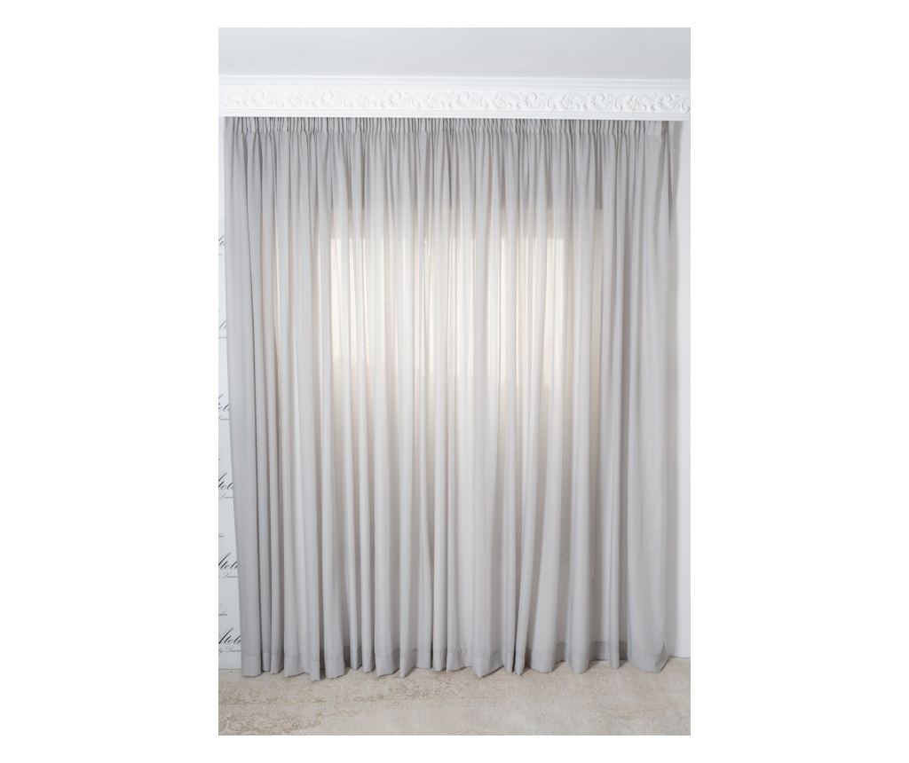 Perdea din voal de matase, gri, destinata bucatariilor, camerelor de zi sau teraselor.