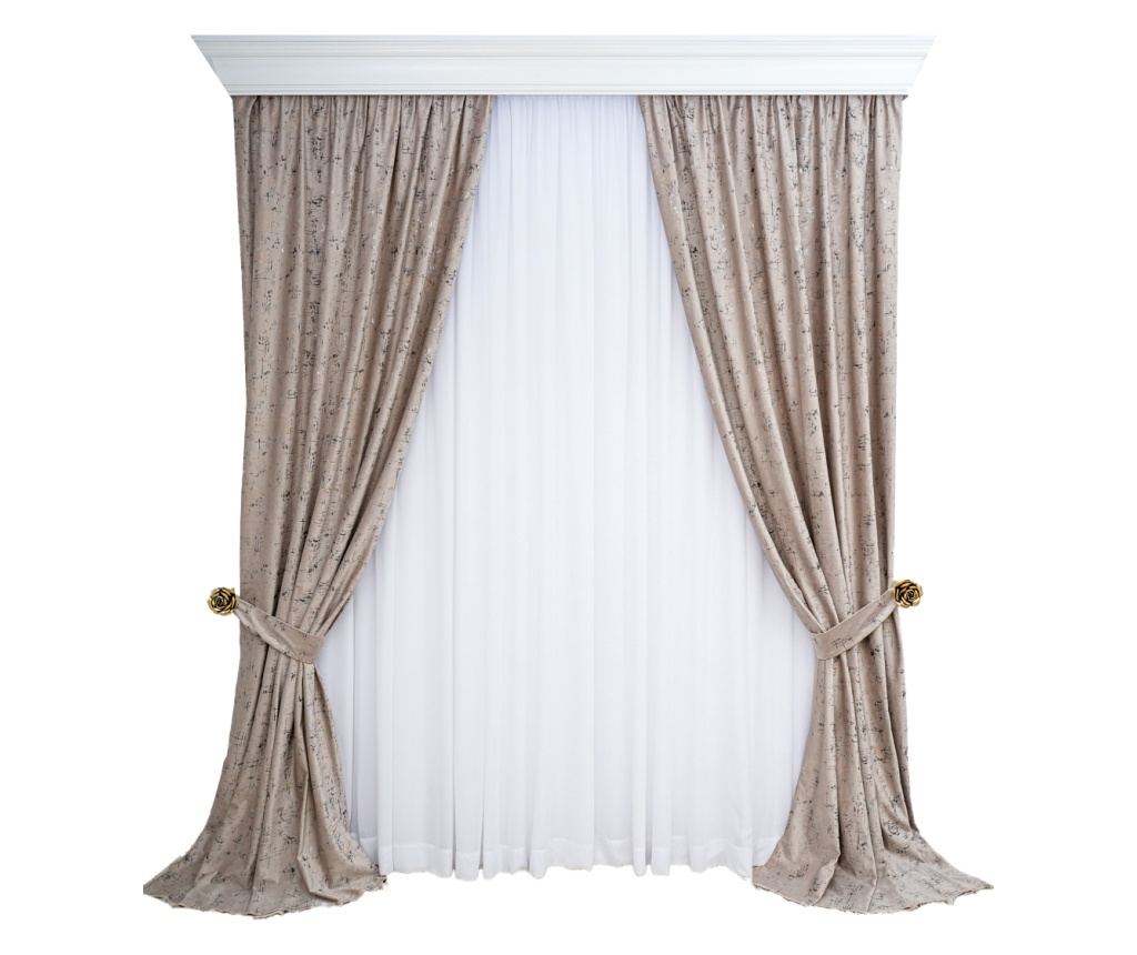 Set de 2 draperii din catifea imprimata, semiopace , culoare bej nisip , calitate superioara, ce va innobila ferestrele dumneavoastra,prevazuta cu rejansa lata (10 cm), care permite agatarea atat pe sina de tavan, pe galerie cu inele.