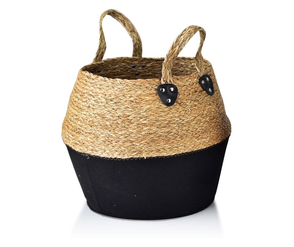 Set od 3 košare iz BALI serije od MONDEX-a. Izrađene od filca i morske trave. Kombinacija crne s prirodnom nijansom suhe trave učinit će vaš interijer jedinstvenim. Ove košare imaju višestruku namjenu, uključujući organiziranje donjeg rublja i sitnica u vašem ormaru ili na komodi. Također se mogu koristiti za pohranu novina itd. L Košara: Presavijena duljina 38cm, Rasklopljena 30cm, Širina 38cm, Visina 34cm. M Košara: Duljina 32cm, Širina 32cm, Visina 28cm. S Košara: Duljina 26cm, Širina 26cm, Visina 24cm. Ne prati, obrisati vlažnom krpom.