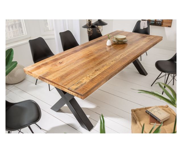 Blagovaonski stol Vstyle Irresistible 289944 unosi eleganciju i funkcionalnost u svaki dom. Izrađen od čvrstog drva manga s lakiranom površinom, ovaj stol ne samo da osigurava dugovječnost, već i unosi toplinu u prostor. Njegova prostrana površina, dimenzija 240 cm dužine, 100 cm širine i 77 cm visine, omogućava udobno sjedenje za više osoba, čineći ga savršenim za obiteljska okupljanja i druženja s prijateljima. Stol se ističe modernim dizajnom s crnim željeznim nogama, koje doprinose industrijskom šarmu. Težina stola je 70 kg, što jamči stabilnost i čvrstoću. Kombinacija prirodne boje drva i crnih nogu čini ga idealnim za različite stilove uređenja. Ovaj stol nije samo komad namještaja, već i prostor za stvaranje nezaboravnih trenutaka i uspomena.