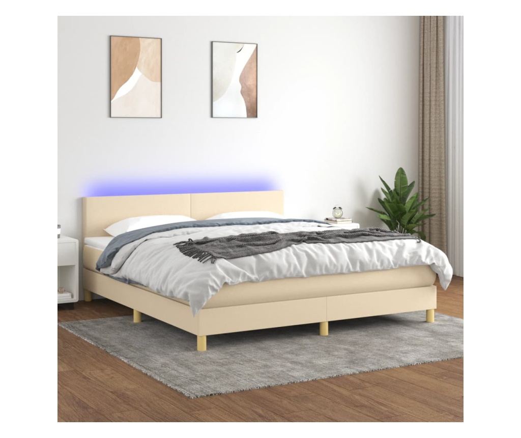 Krevet s madracem i LED rasvjetom, krem, 160x200 cm, tekstil