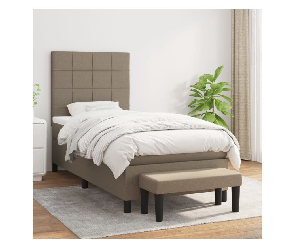 Box krevet s madracem Pat, taupe siva, 90x200 cm, tekstil