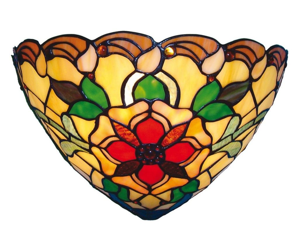 Crna metalna i Tiffany staklena zidna lampa, 1 x 40W, 30 cm x 15 cm x 17 cm
