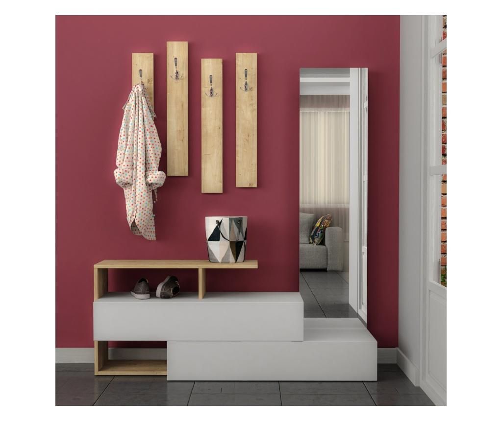 Set ormarić za obuću, 4 vješalice i zrcalo Organise White Oak